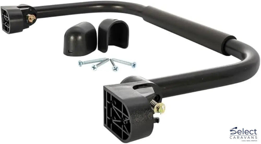 Camco's Small Fold-Away RV Grab Handle provides a secure hold for entering and exiting your RV. It is perfect for replacing an old or broken grab handle, or installing on an RV without a grab handle. The reduced size is ideal for smaller vehicles and trailers. This product has an ergonomic design that provides a solid, secure grip. It features a comfort sleeve for ease of use. The handle is simple to install and can be mounted on either the left or right side of your RV door. When not in use, the Grab Handle easily lifts and rotates to lay flat against the side of your RV. This product is constructed of durable aluminum with UV-resistant plastic brackets. All installation hardware is included. Color: black.