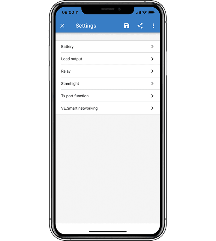 The intelligent Load output function prevents damage caused by running batteries 'flat'. You can configure the voltage at which SmartSolar disconnects a load - thereby preventing excessive drain on your batteries. And here's the clever bit: SmartSolar will attempt a 100% recharge daily. If it can't - during periods of poor weather - it raises the disconnect voltage daily until it succeeds. We call this feature BatteryLife because it maintains your battery's health and extends its life.