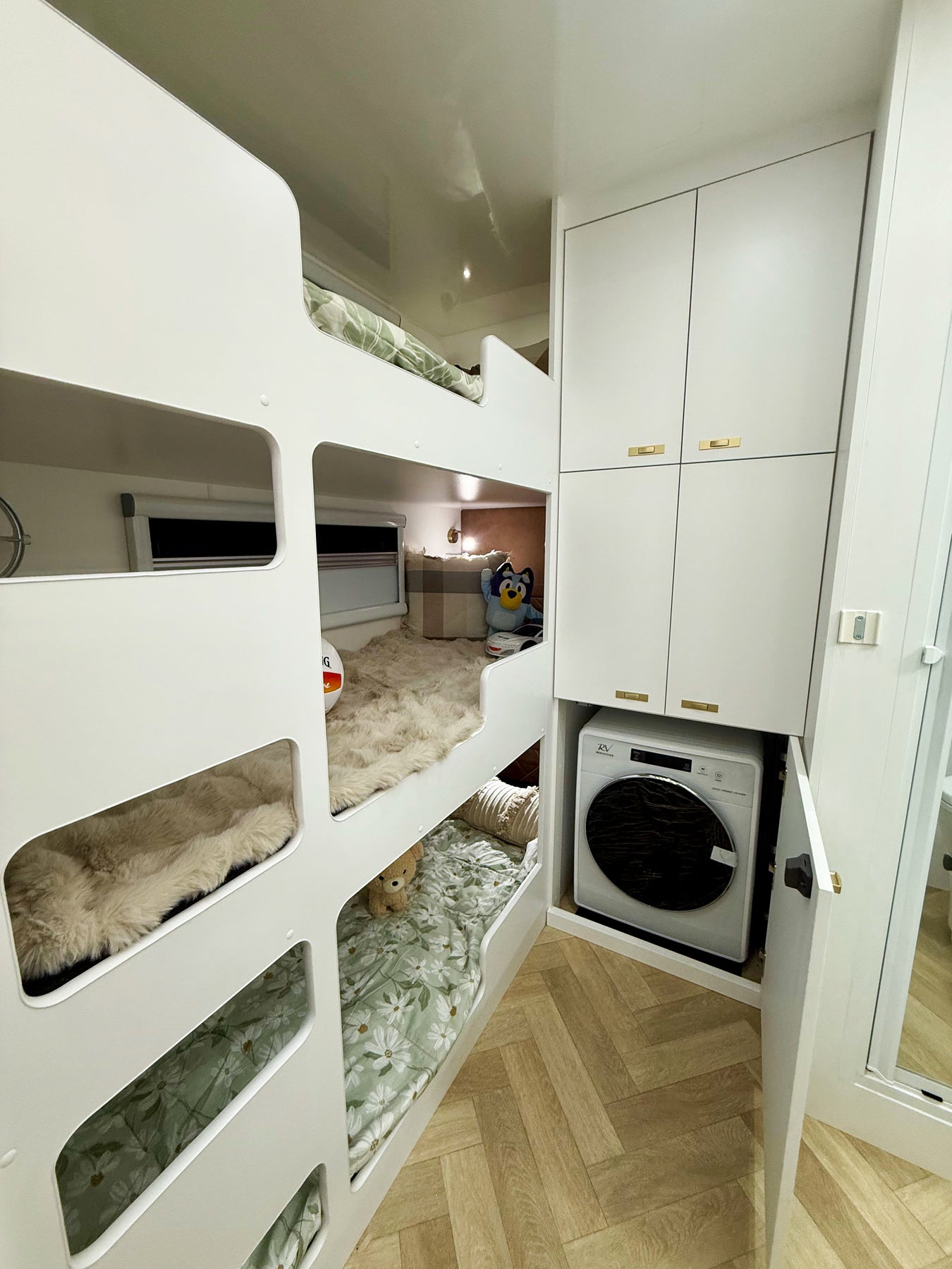 Bunk bed with built-in washing machine in a compact living space
